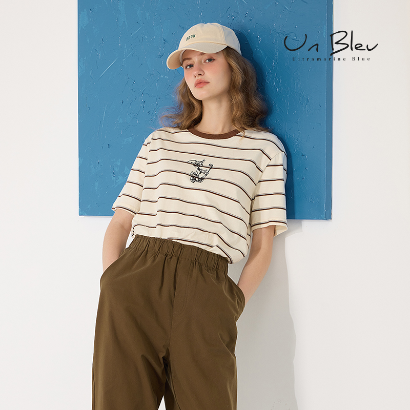 条纹纯棉t恤女夏季新款短袖韩版潮牌女装休闲宽松短款小个子上衣