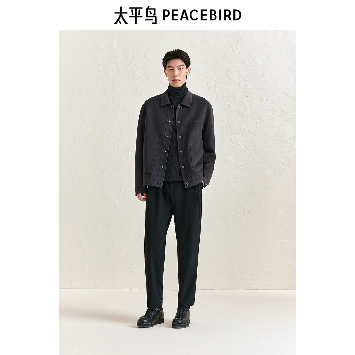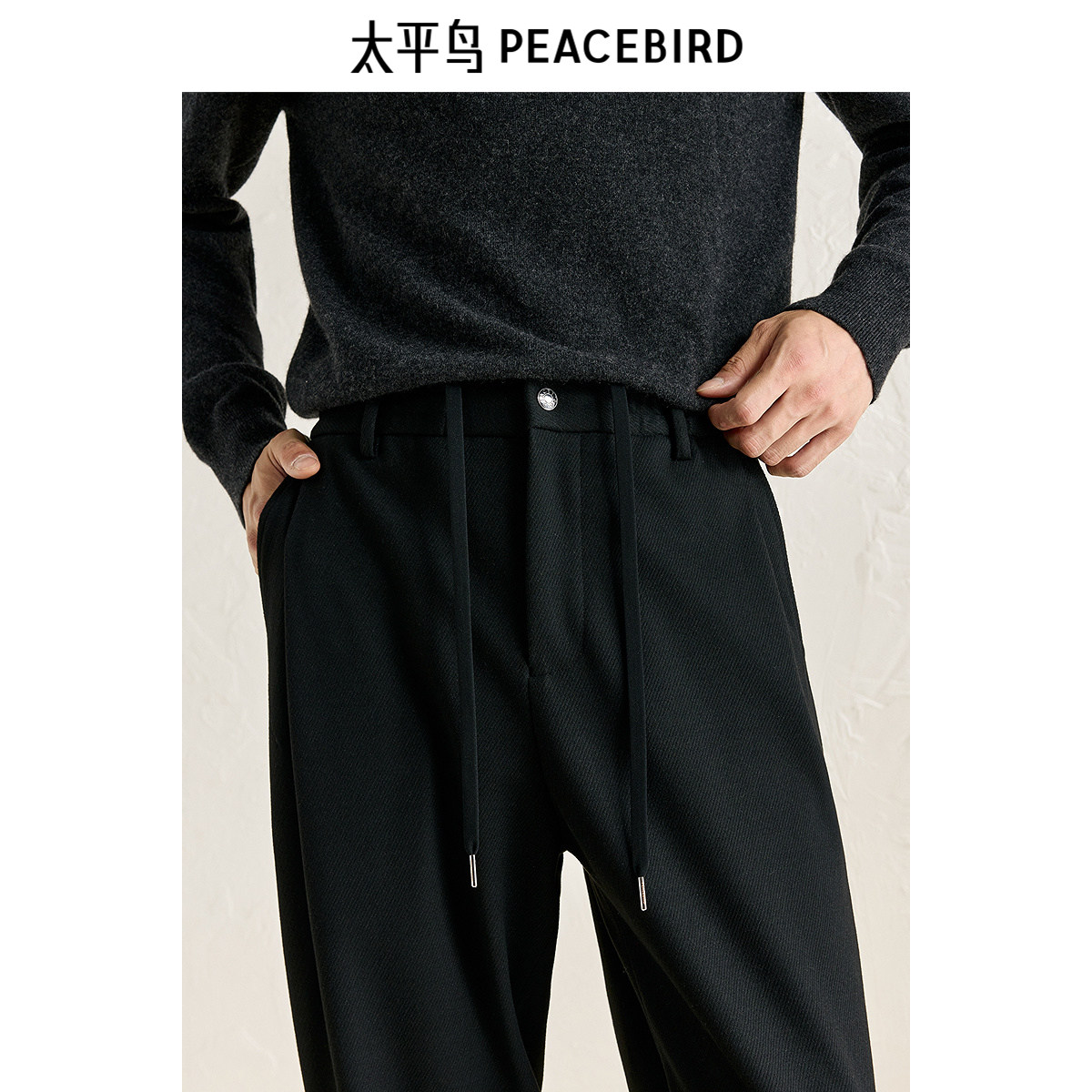 【仿毛呢】太平鸟男装休闲裤冬季保暖锥形裤精致刺绣西装裤