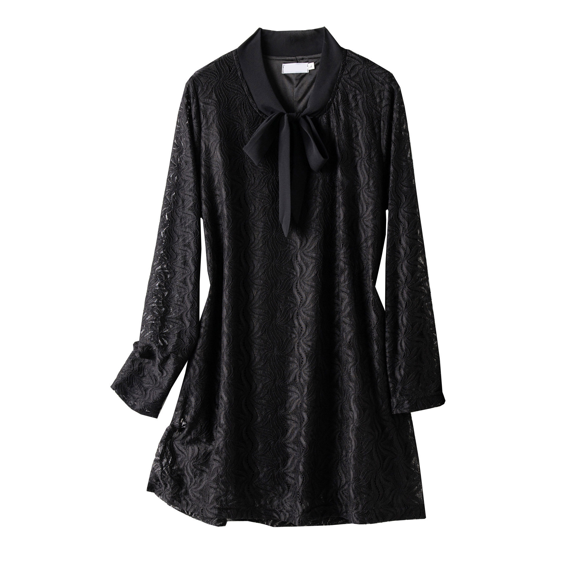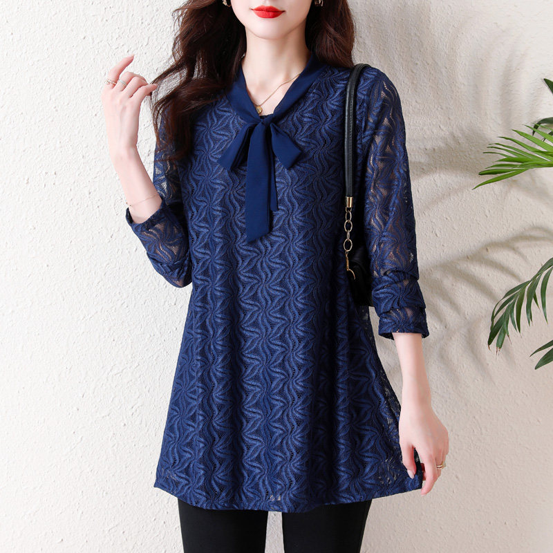 蝴蝶结蕾丝打底衫大码女装长袖秋冬新款高级感内搭宽松中长款上衣