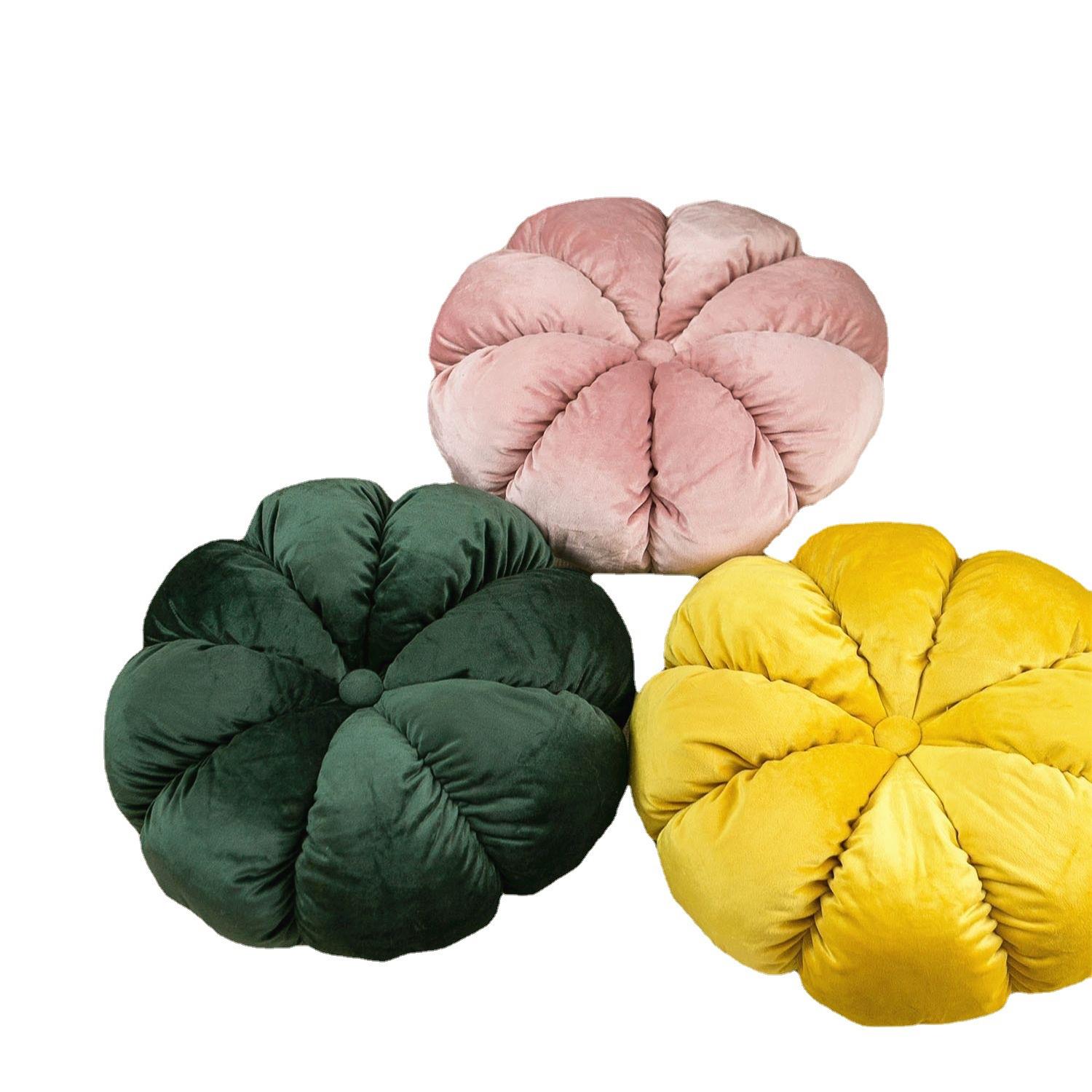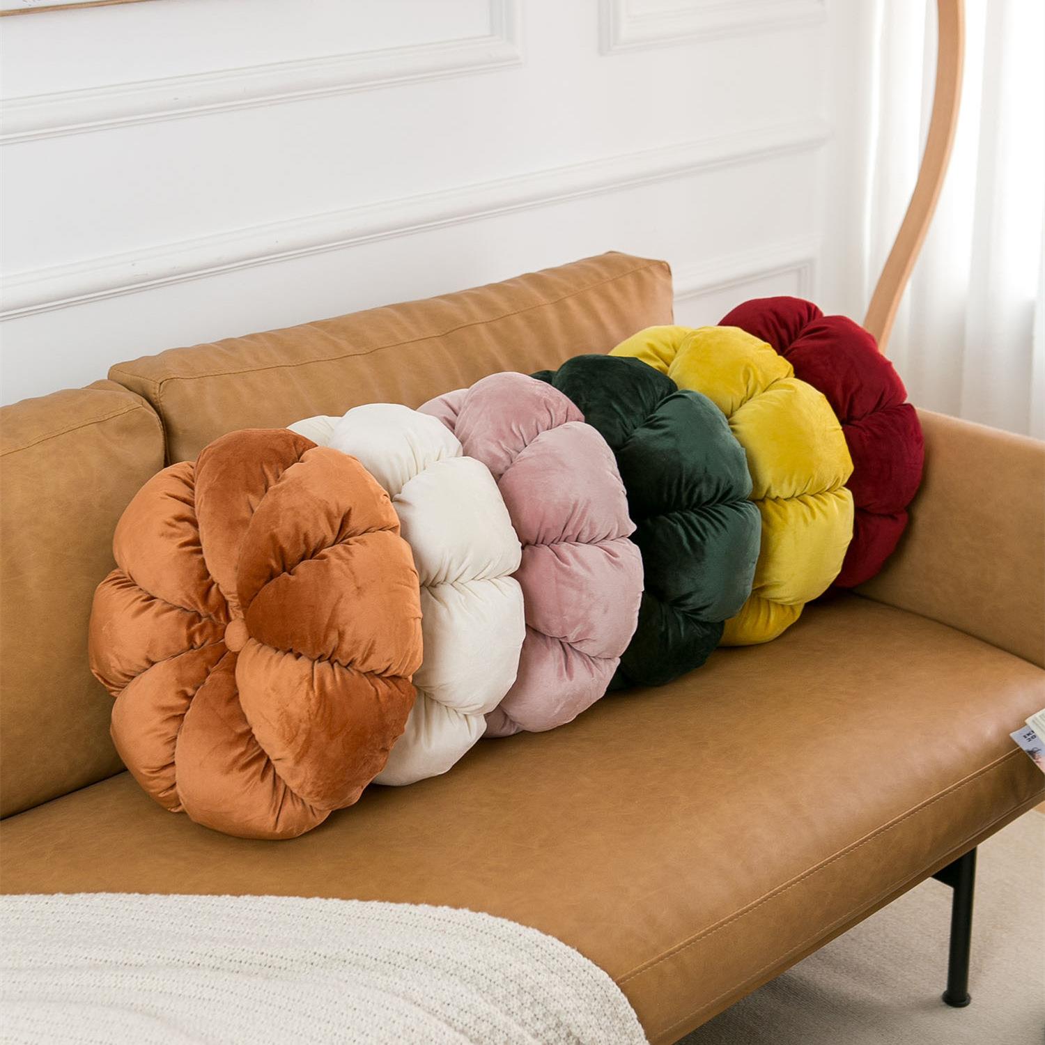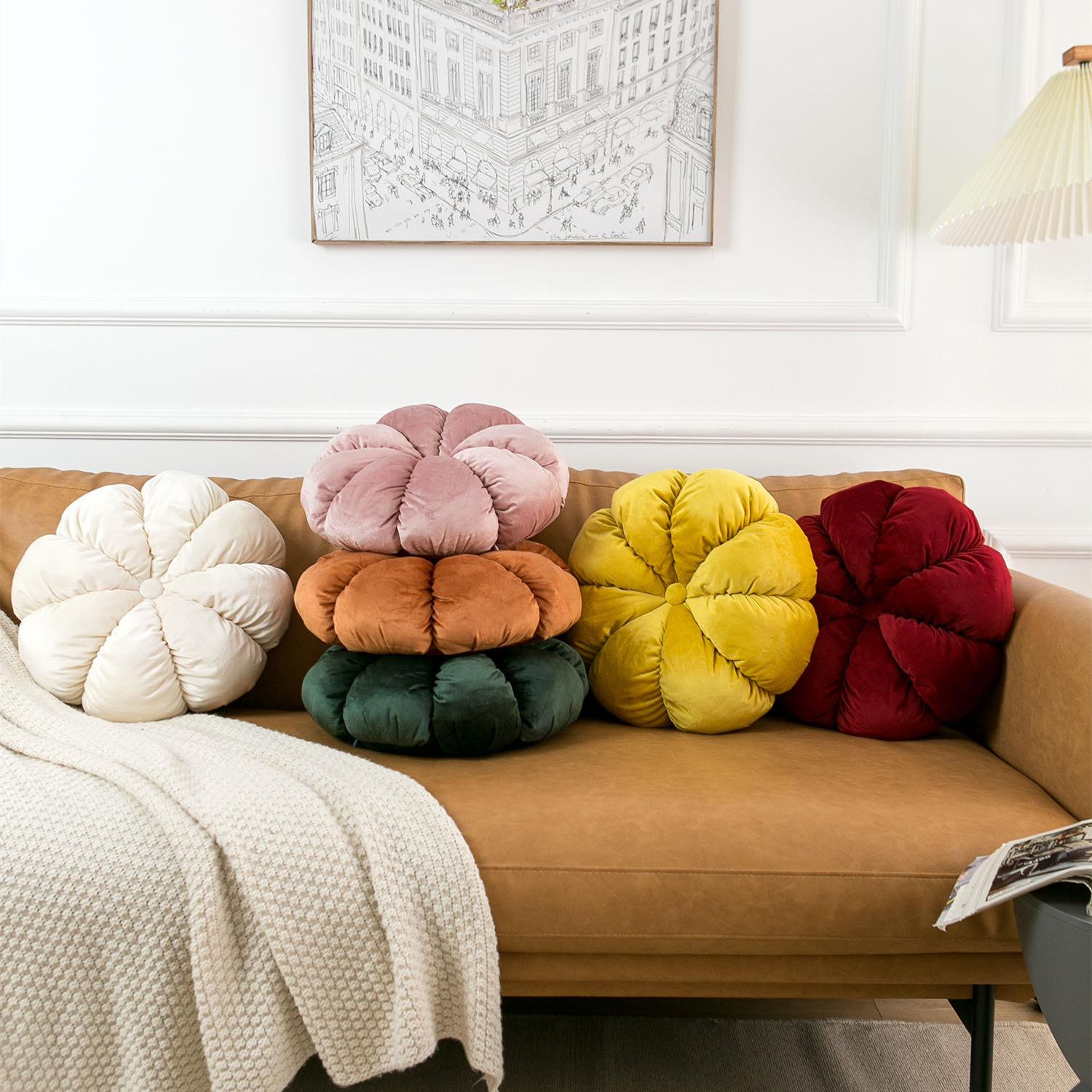 现代简约沙发抱枕靠背垫 纯色丝绒ins风花朵抱枕圆形花苞靠枕