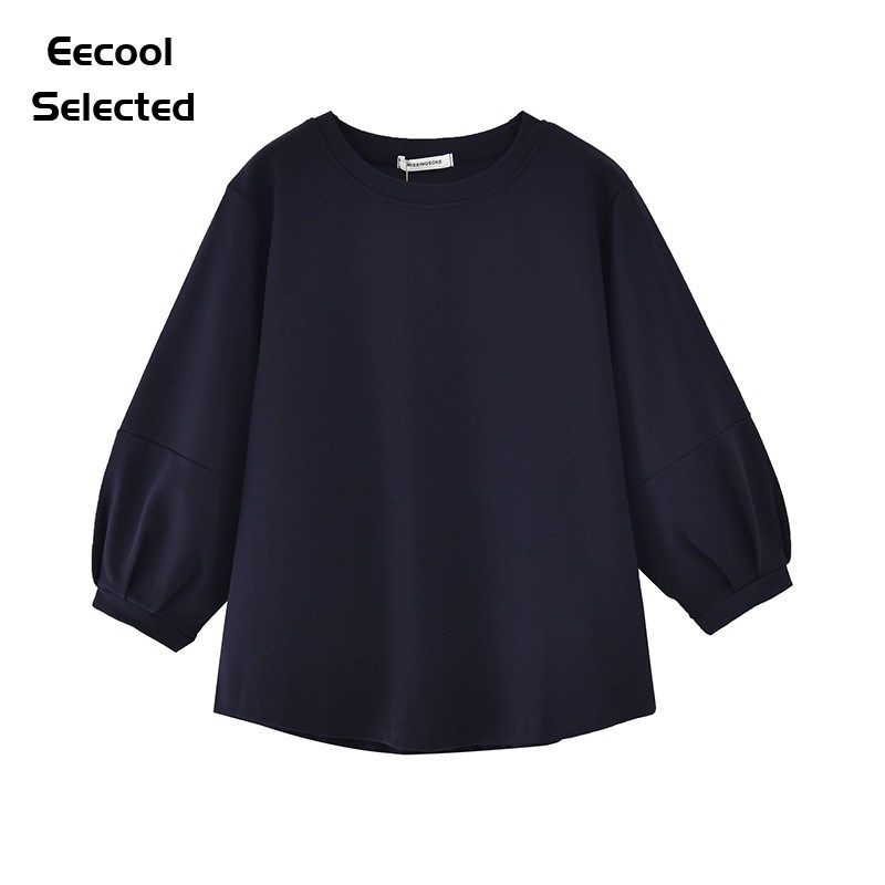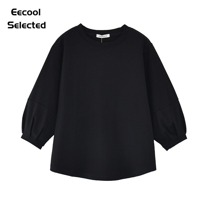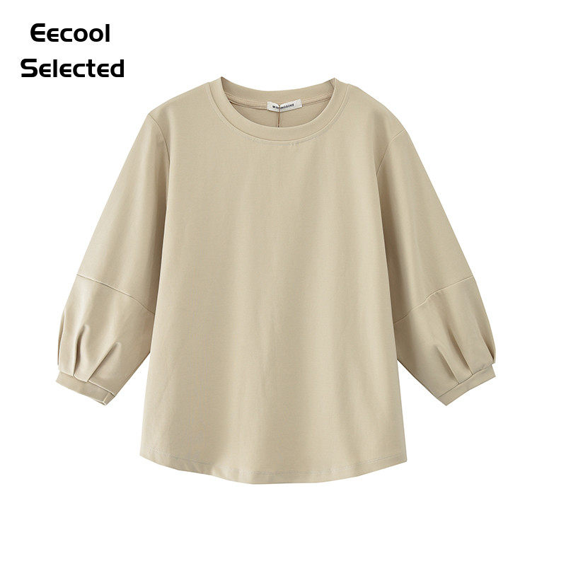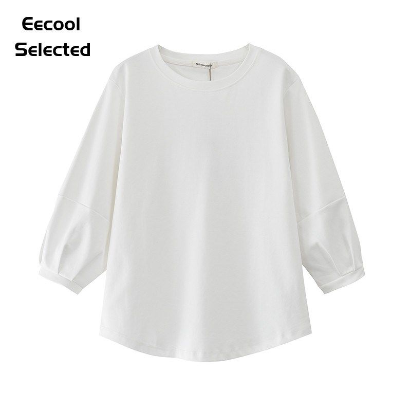 早秋七分袖2024新款时尚灯笼袖 女士纯棉T恤打底衫中袖上衣女秋季