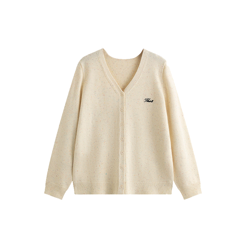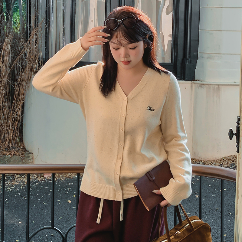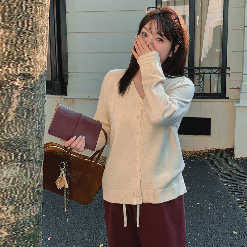 【清仓】彩点毛衣女v领上衣2024冬胖mm休闲百搭宽松针织开衫外套