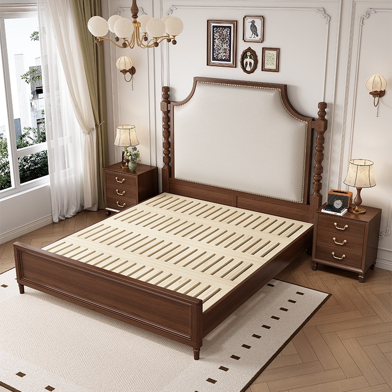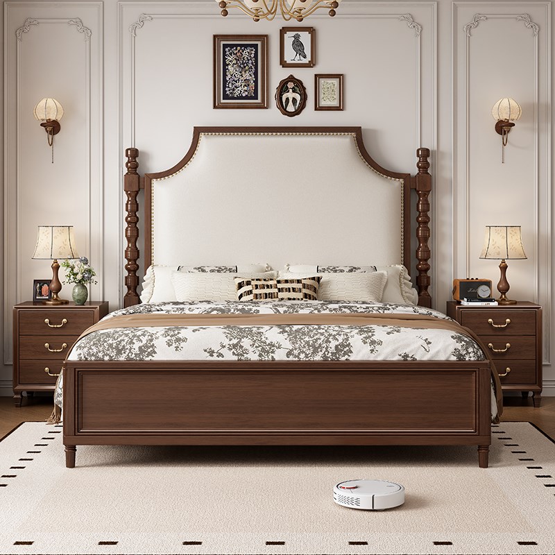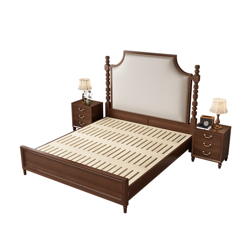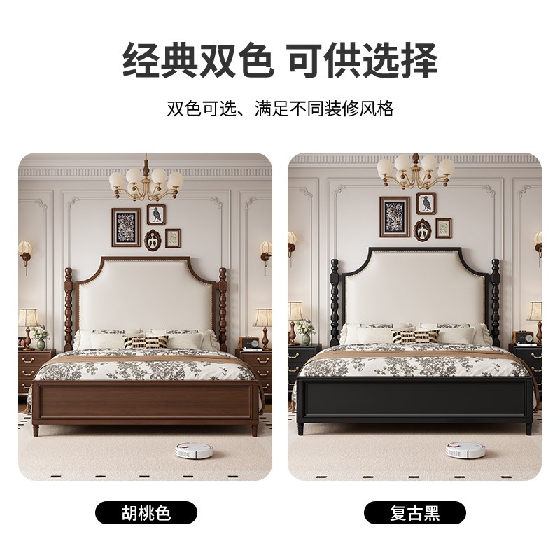 美式中古风全实木床主卧婚床法式高箱储物床真皮软包床1.8双人床