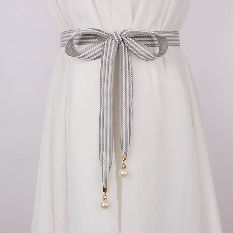 打结简约布腰带吊坠装饰百搭连衣裙子女士绑带蝴蝶结黑色系带腰绳