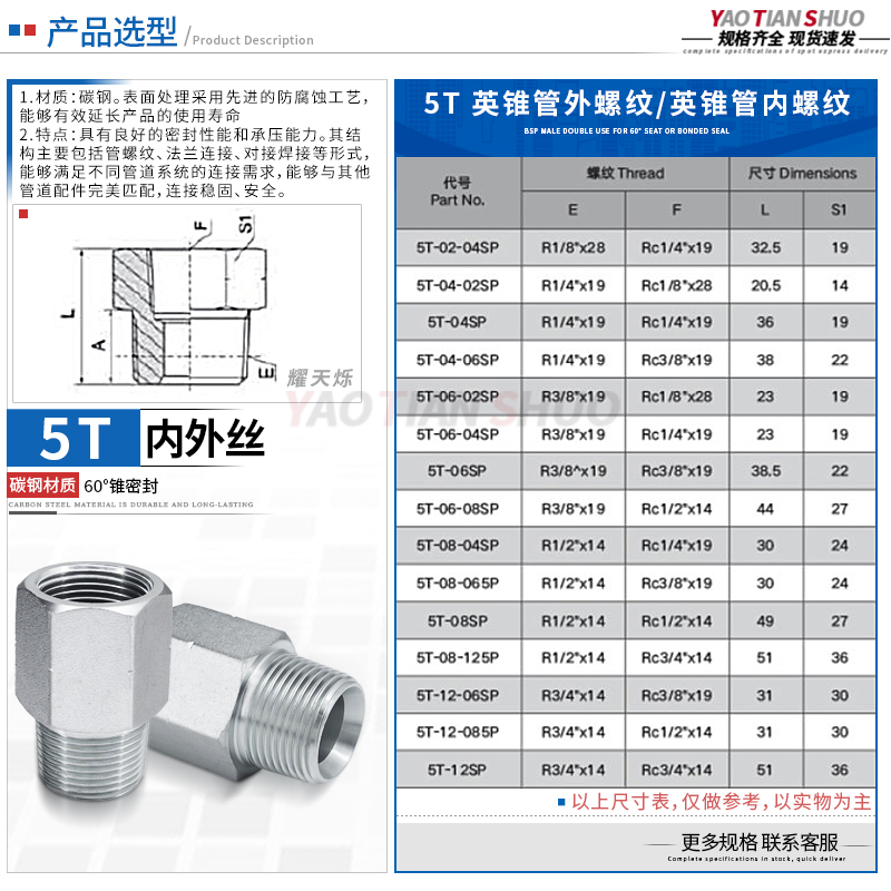 5T内外丝转换接头BSPT外丝ZG螺RC螺纹英锥管变油管接头PT永华标准