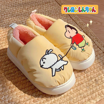 细细条 正版可爱蜡笔小新包跟棉拖鞋冬季舒适加绒保暖情侣家居鞋