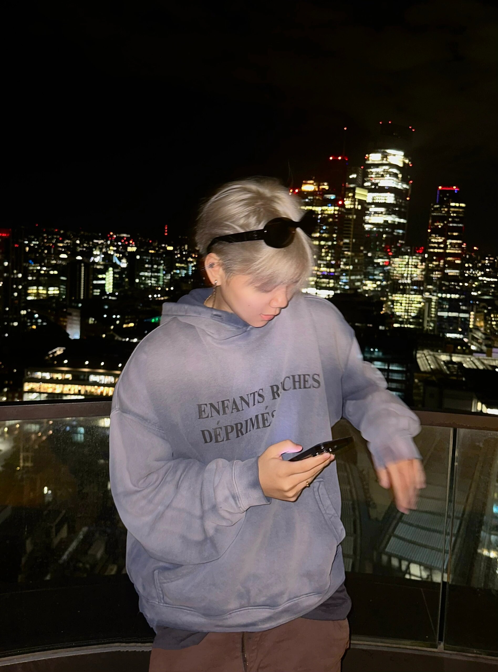 ERD忧郁富二代字母渐变蓝色卫衣高街水洗做旧美式休闲男女连帽衫