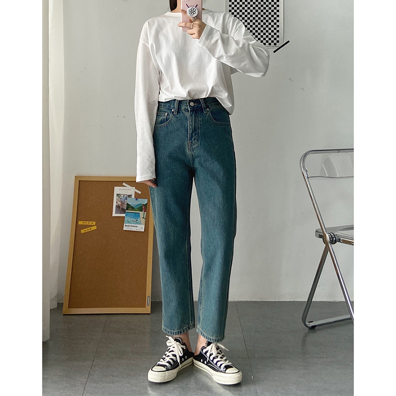 梨形身材裤子女秋季大码胖mm宽松显瘦直筒牛仔裤韩版高腰九分裤子