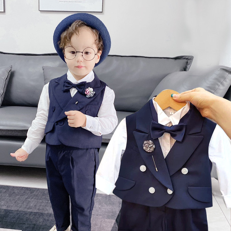 男童小西装男宝宝西服套装儿童西装套装三件套花童新款帅气英伦秋