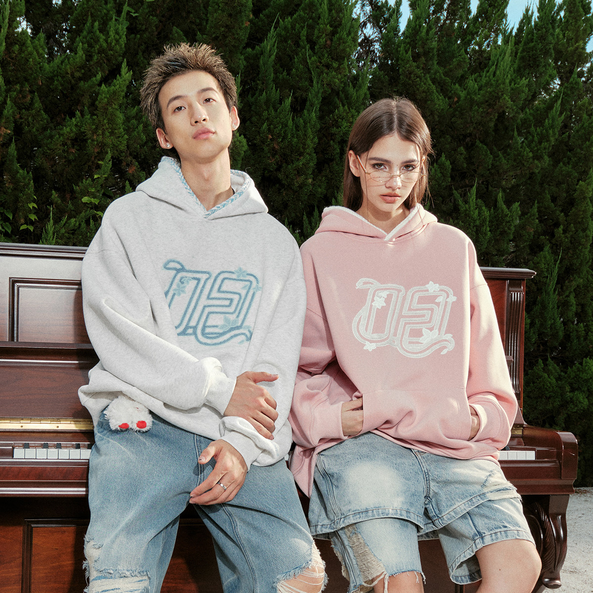 FORNINES重磅毛巾绣连帽卫衣男女国潮加绒情侣装帽衫加厚套头外套