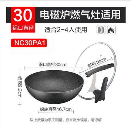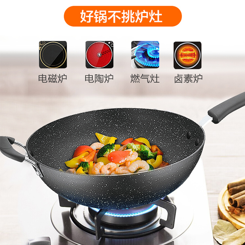 苏泊尔家用星时尚不粘锅炒锅大双麦石电磁炉燃煤气灶通用可立盖