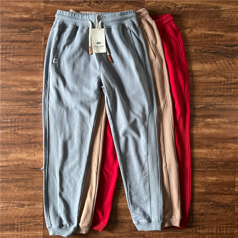 日单运动裤男春夏薄款卫裤修身收口休闲裤纯色棉线毛圈小脚长裤潮