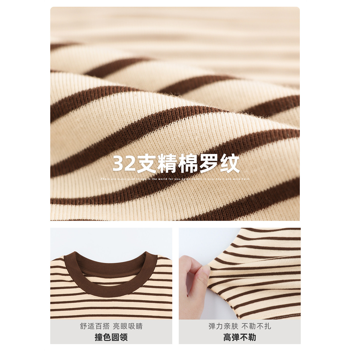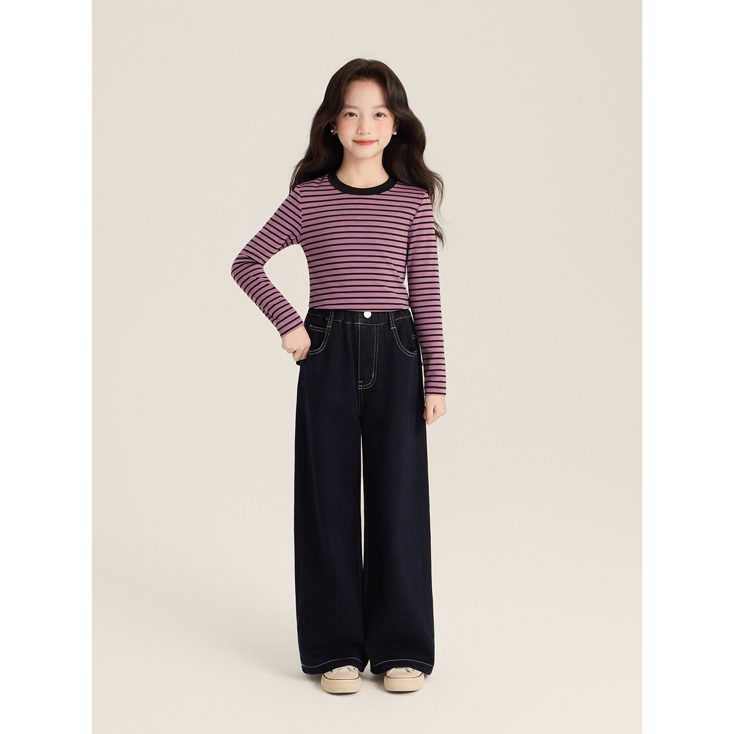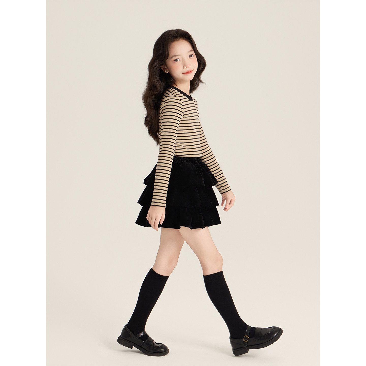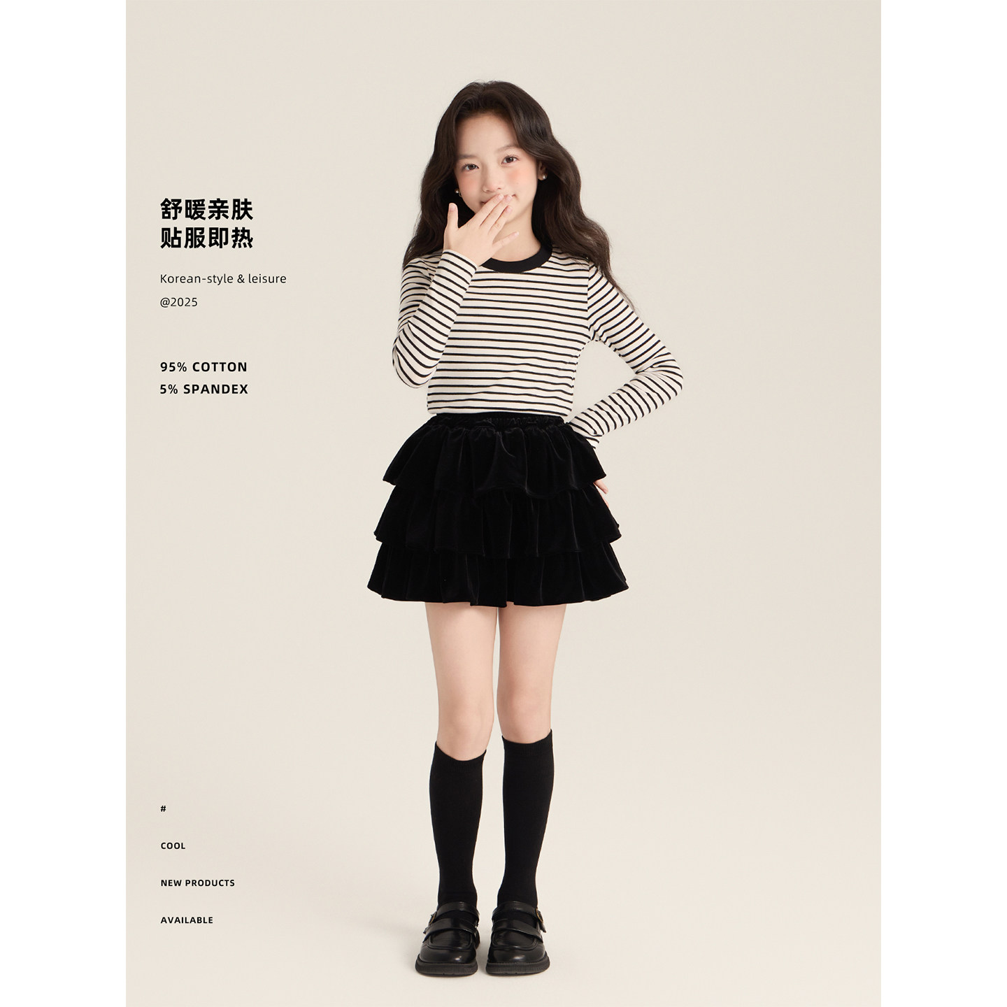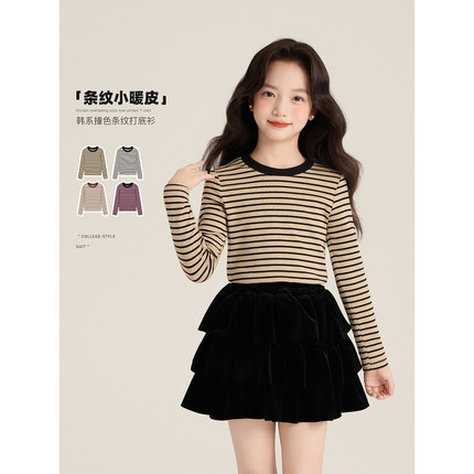 Amybaby女童上衣冬季2025新款韩版洋气条纹撞色长袖打底衫