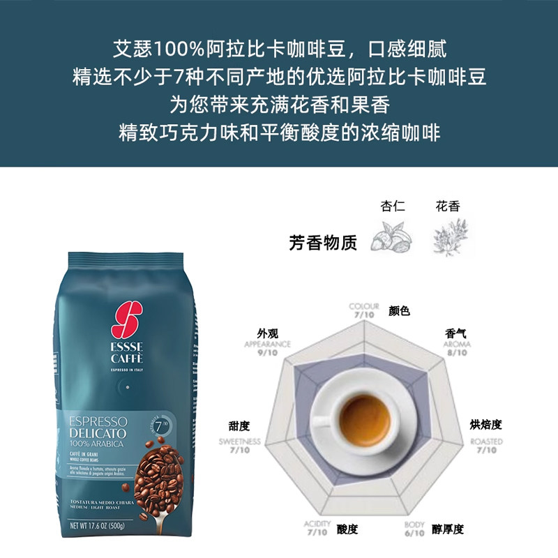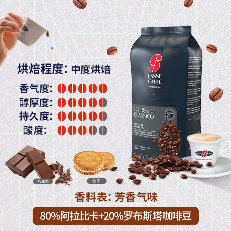 艾瑟ESSSE CAFFE意式经典咖啡豆500g意大利进口特浓烘焙拼配现磨