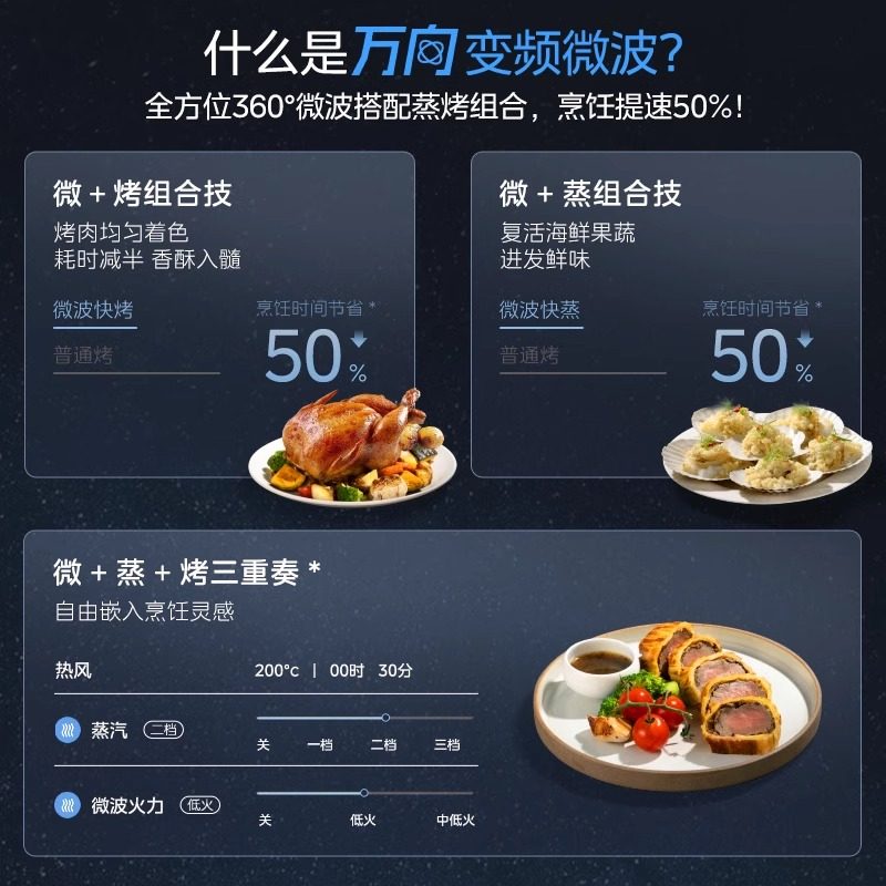 美的GS5微蒸烤炸炖一体机家用嵌入式微波四合一蒸烤箱电蒸箱烤箱