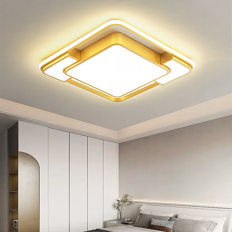 北欧金色LED长方形客厅吸顶灯现代简约卧室房间家用大气轻奢灯具