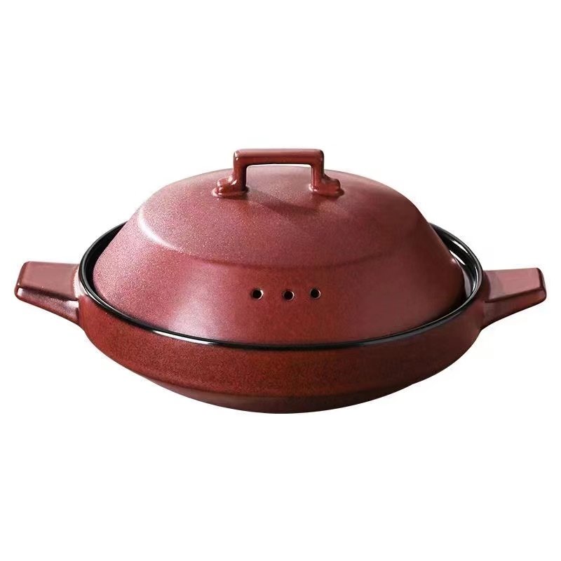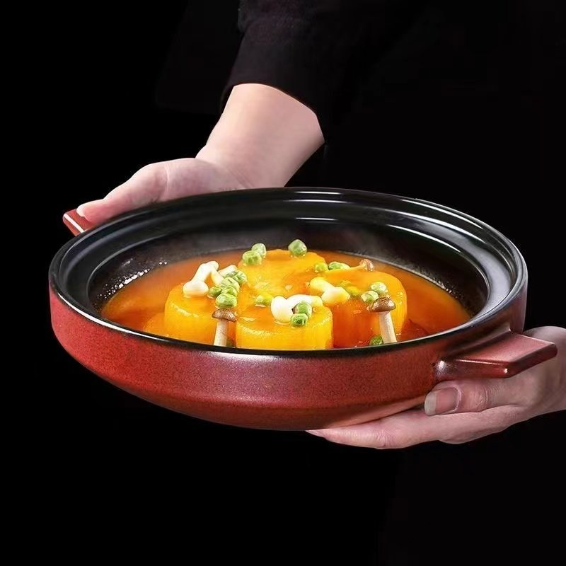 日式双耳窑变红陶瓷砂锅煲商用甲鱼煲干烧不裂鱼头煲大口径沙锅