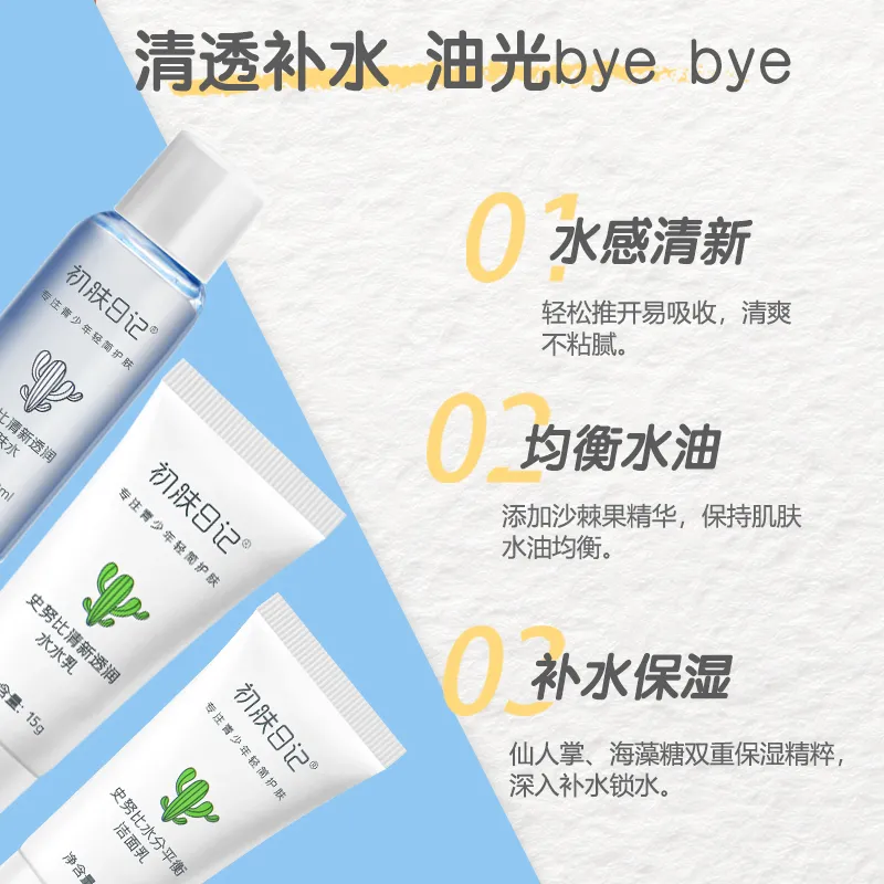 史努比清新透润中样套洁面15g+水水乳15g+爽肤水30ml旅行装套装