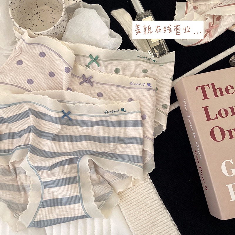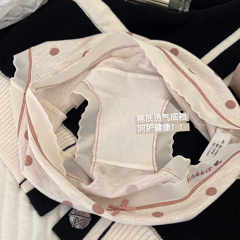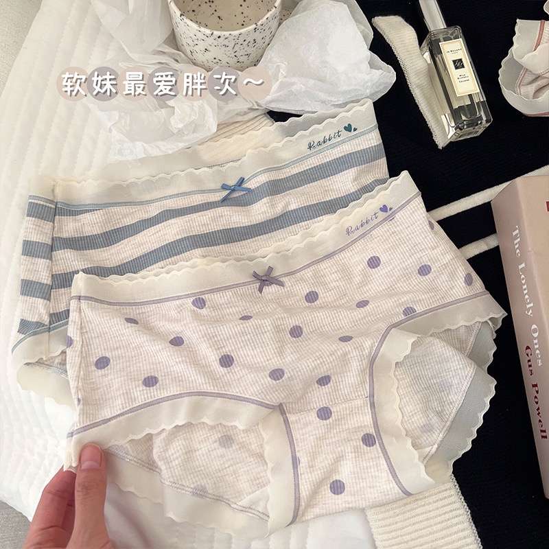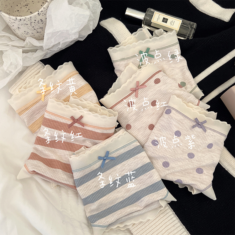 日系甜美奶油系莫代尔波点可爱条纹透气纯棉裆中腰三角内裤女学生