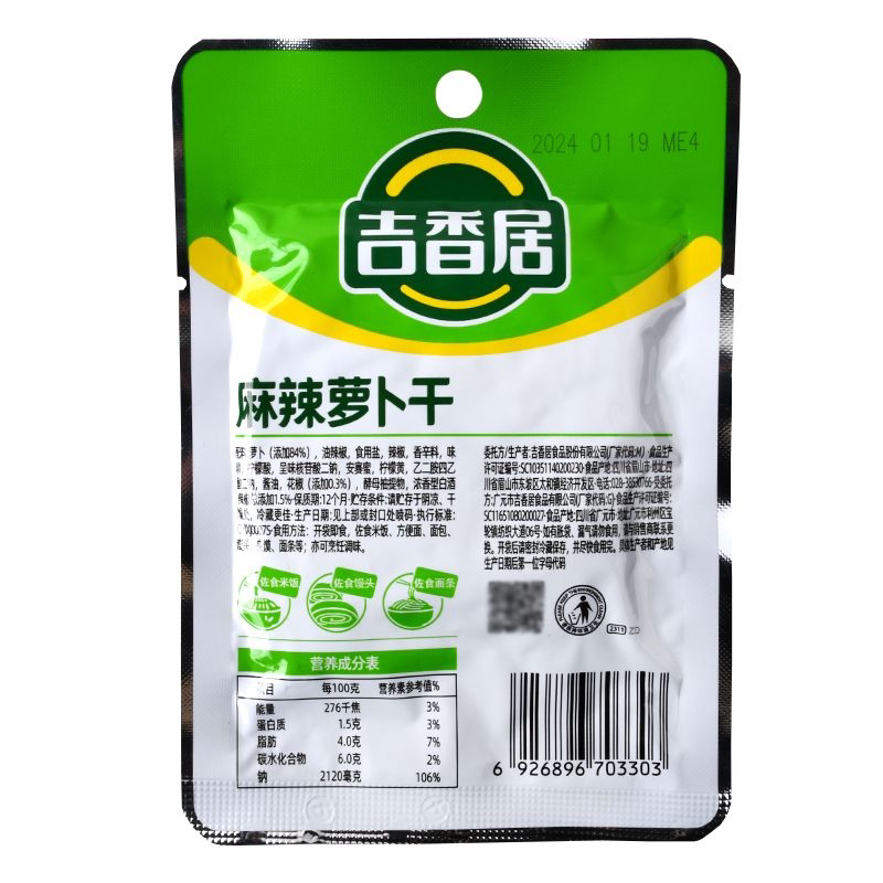 吉香居麻辣萝卜干52g*50袋四川特产泡菜开味下饭菜小包装即食咸菜