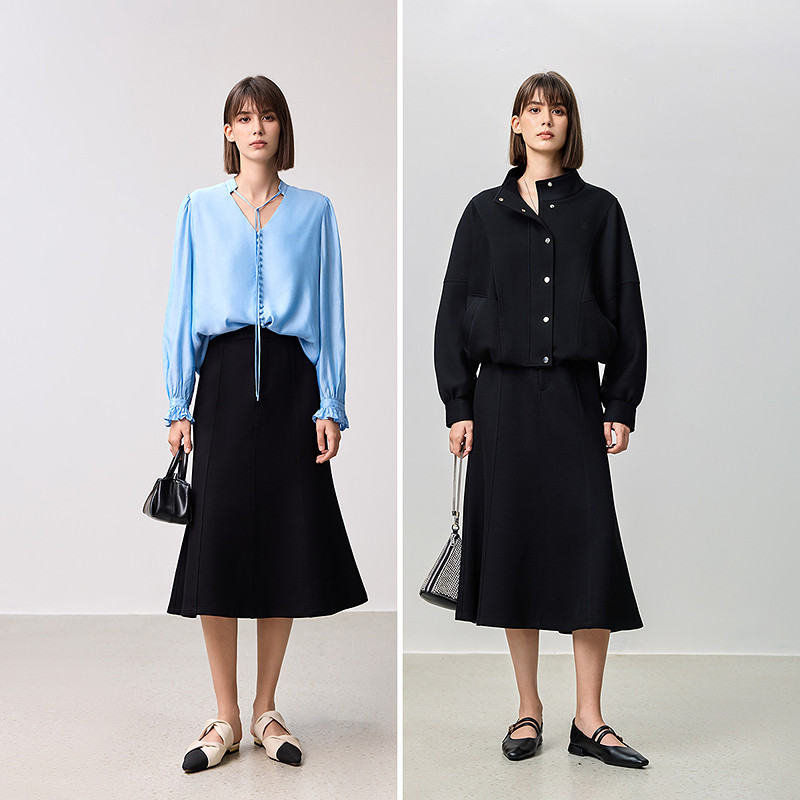 【小黑裙系列】LILY2025春新款女装棉质黑色卫衣套装鱼尾裙半身裙