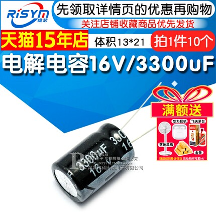 Risym 电解电容16V/3300uF 体积13*21直插优质铝电解电容器 10只