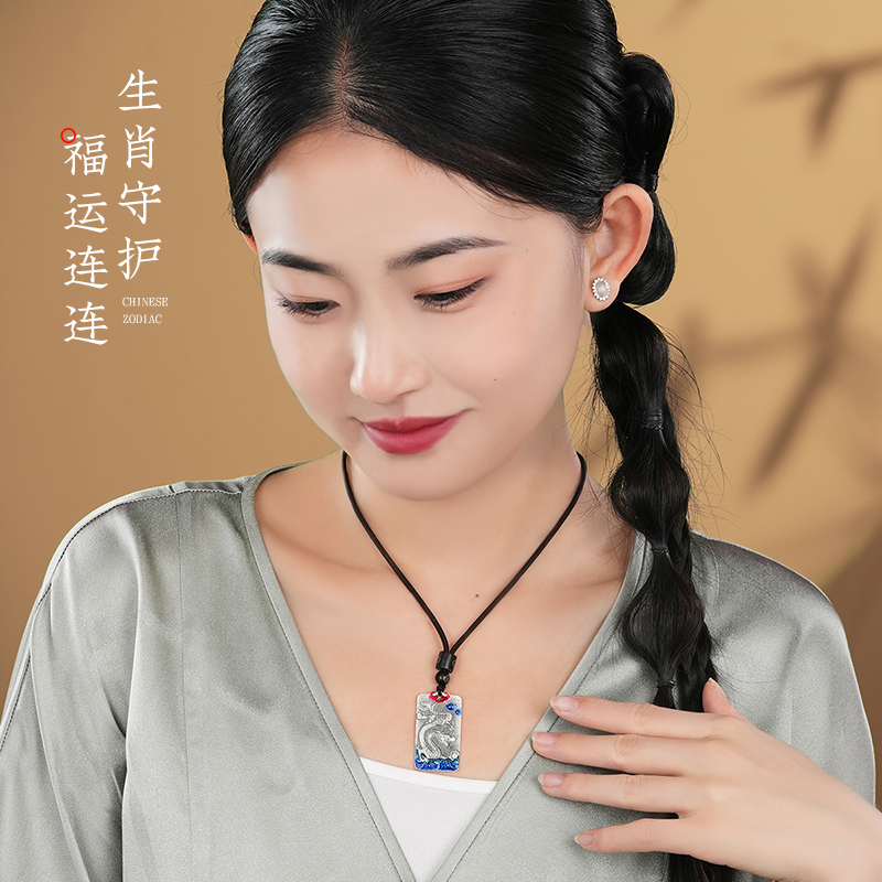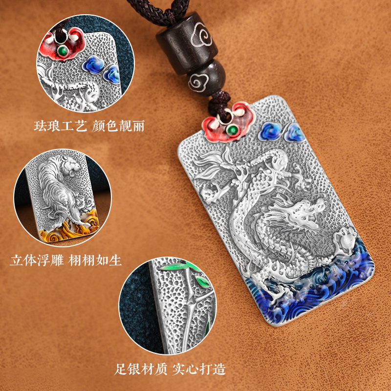 999纯银实心吊坠男士新中式项链男款十二生肖银饰生日礼物男生款