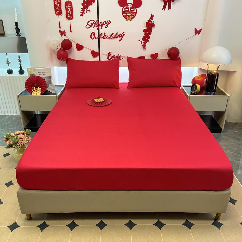 结婚庆大红色床罩单件床笠席梦思保护套防滑床垫套子1.5m1.8m春秋