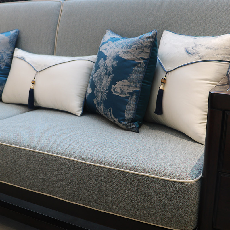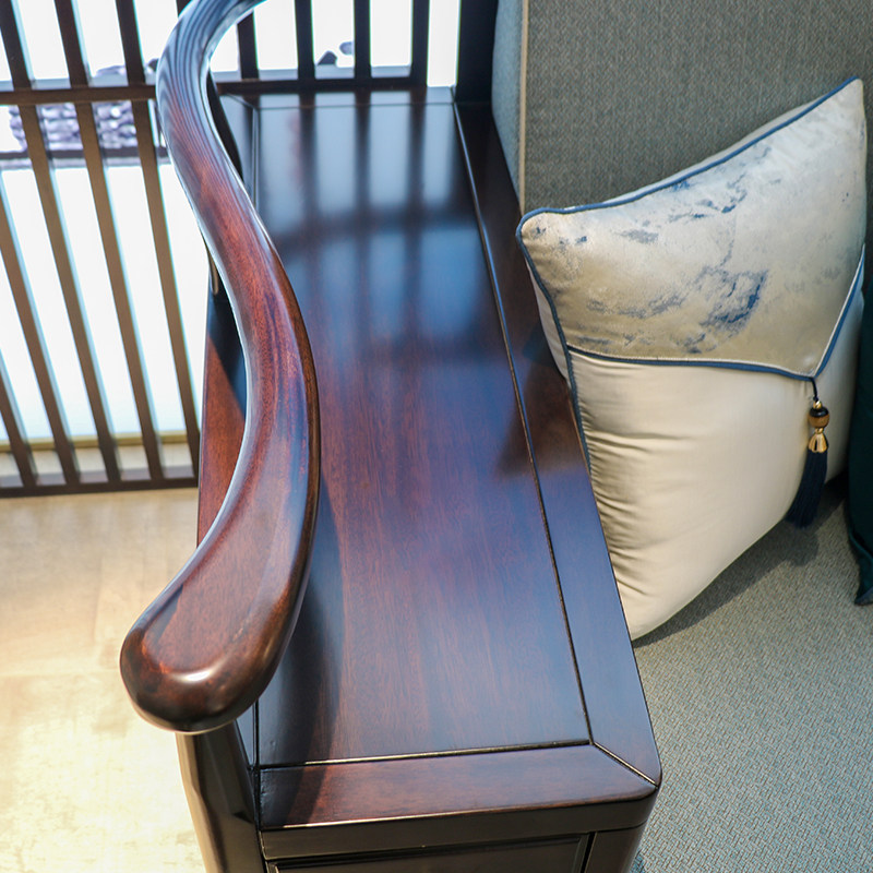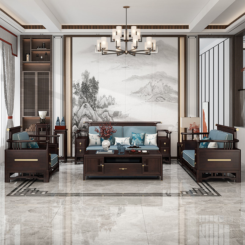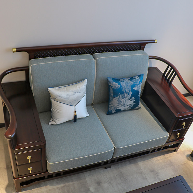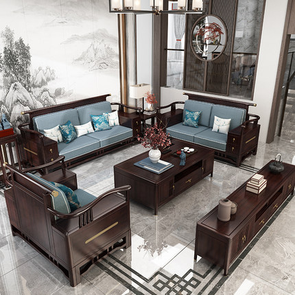 新中式实木沙发茶几组合客厅可拆洗布艺沙发大小户型黑檀禅意家具