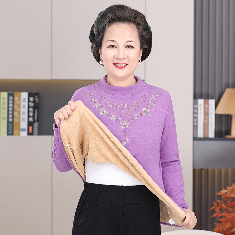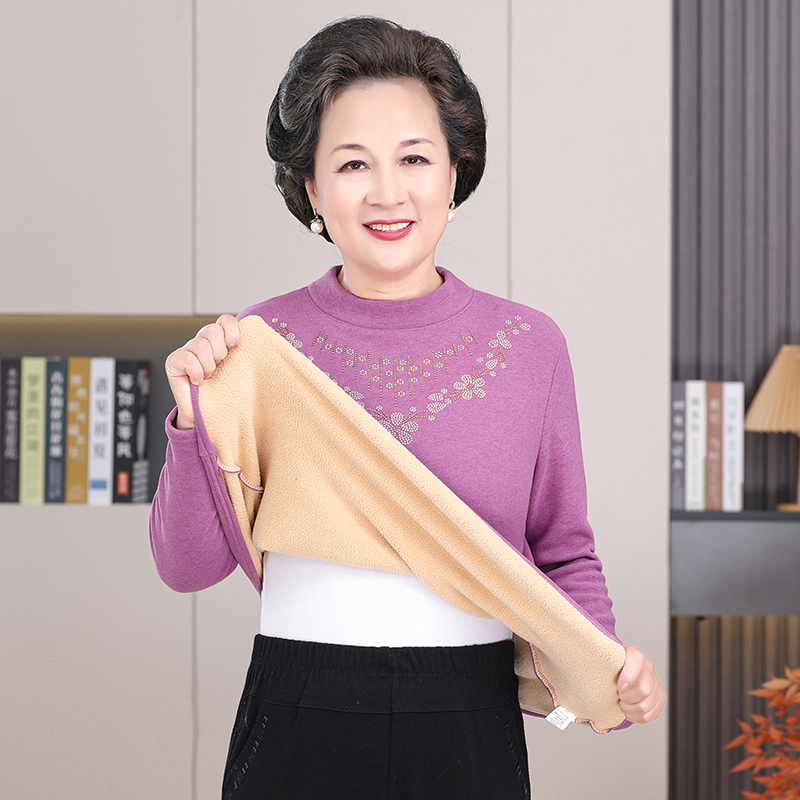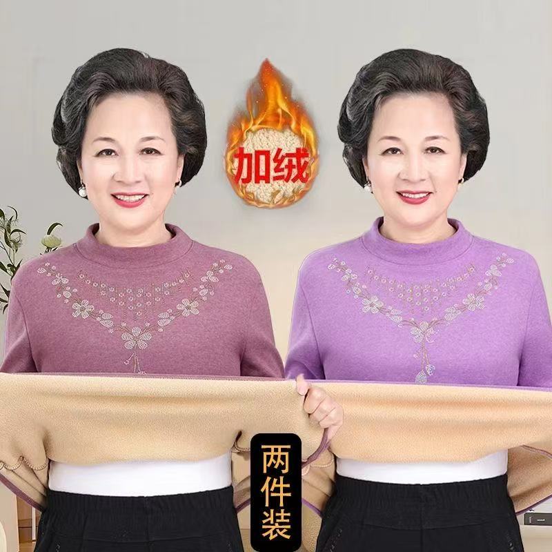 妈妈装加绒加厚秋冬季半高领内衣保暖上衣中老年德绒女装打底衫女