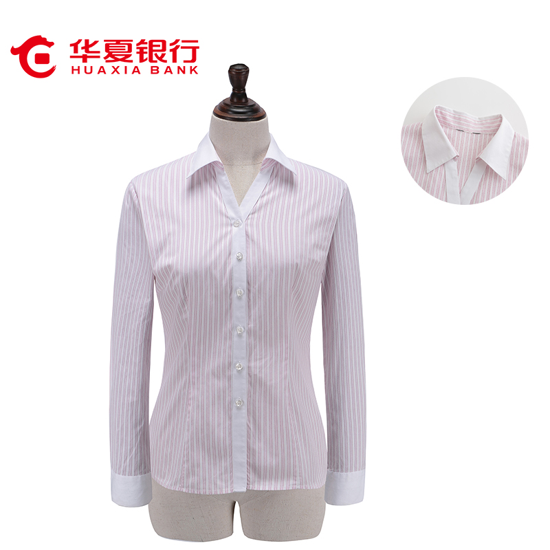 2019新款华夏银行行服精品女士条纹短袖华夏银行工装免烫衬衫促销