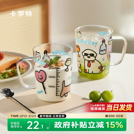 卡罗特玻璃水杯刻度牛奶杯子带把手咖啡杯女高颜值新款家用马克杯