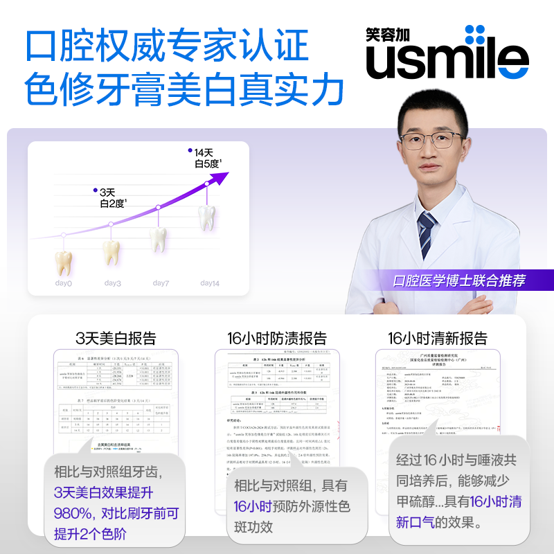 【梓渝同款】笑容加usmile冷光色修牙膏成人美白紫光去黄渍清口气