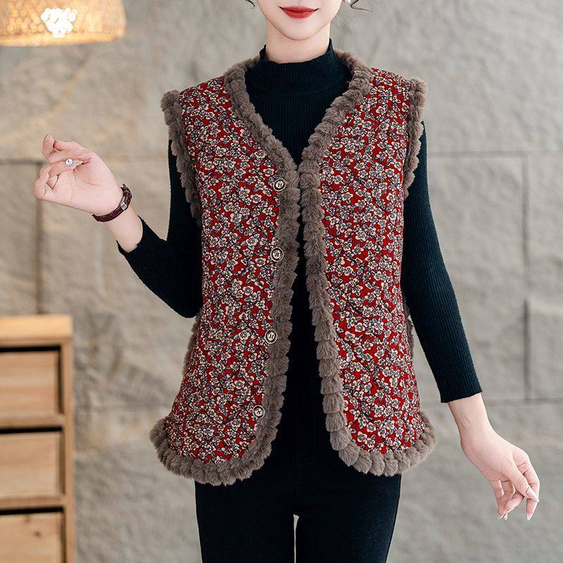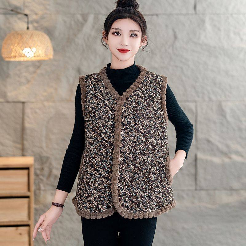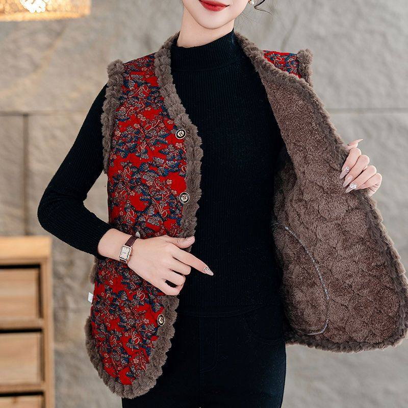 2025加绒棉马夹秋冬新款中老年女无袖外套奶奶坎肩马甲上衣女士