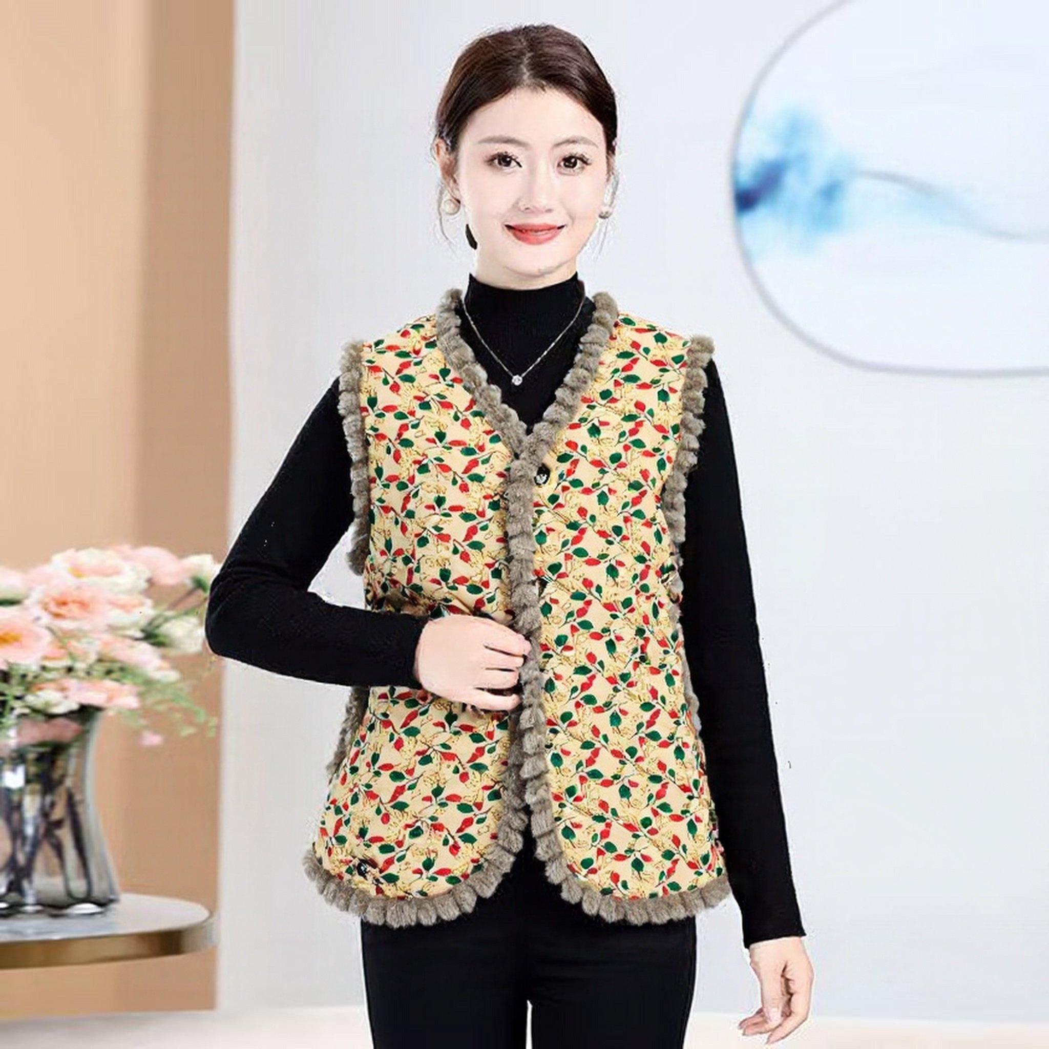 妈妈装无袖加绒通勤风马夹秋冬女