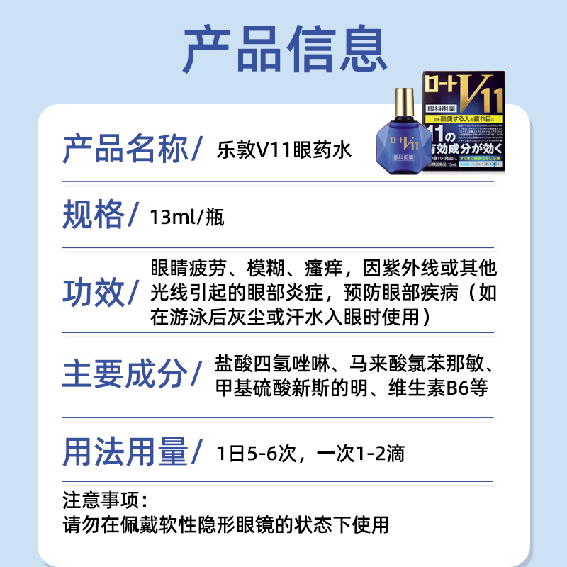 日本直邮乐敦V11维生素眼药水眼疲劳滋润眼睛滴眼液温和去红血丝