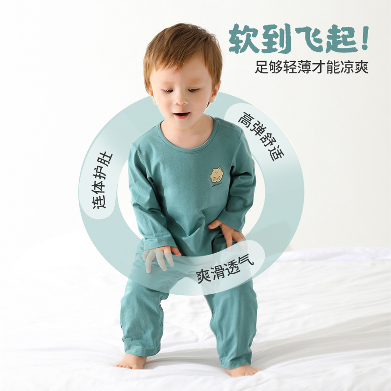 莫代尔儿童连体睡衣夏季薄款冰丝空调服宝宝睡袋长袖男童女家居服
