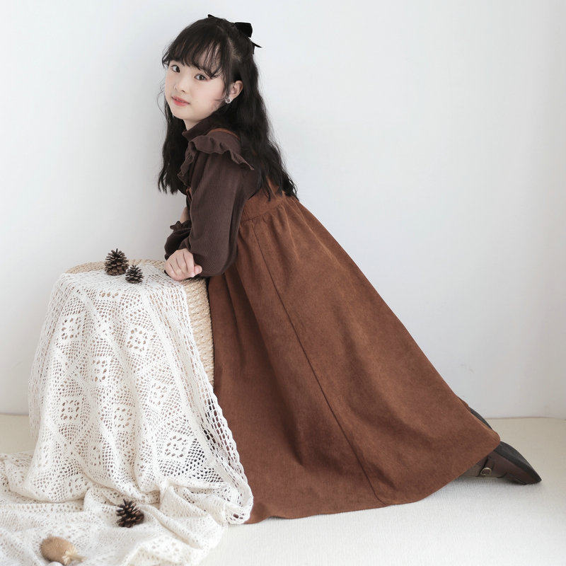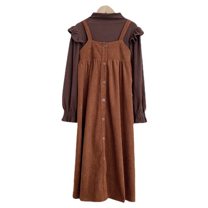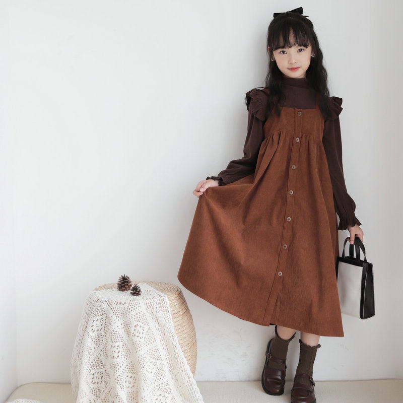 女童装春秋冬款中大童吊带背心长裙子公主连衣裙背带儿童长袖套装