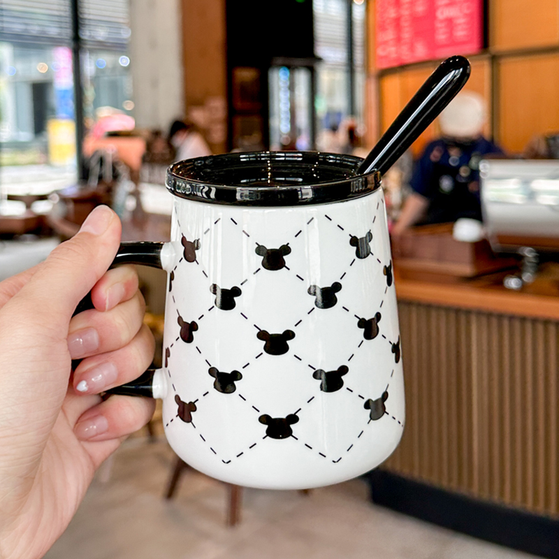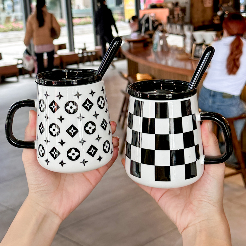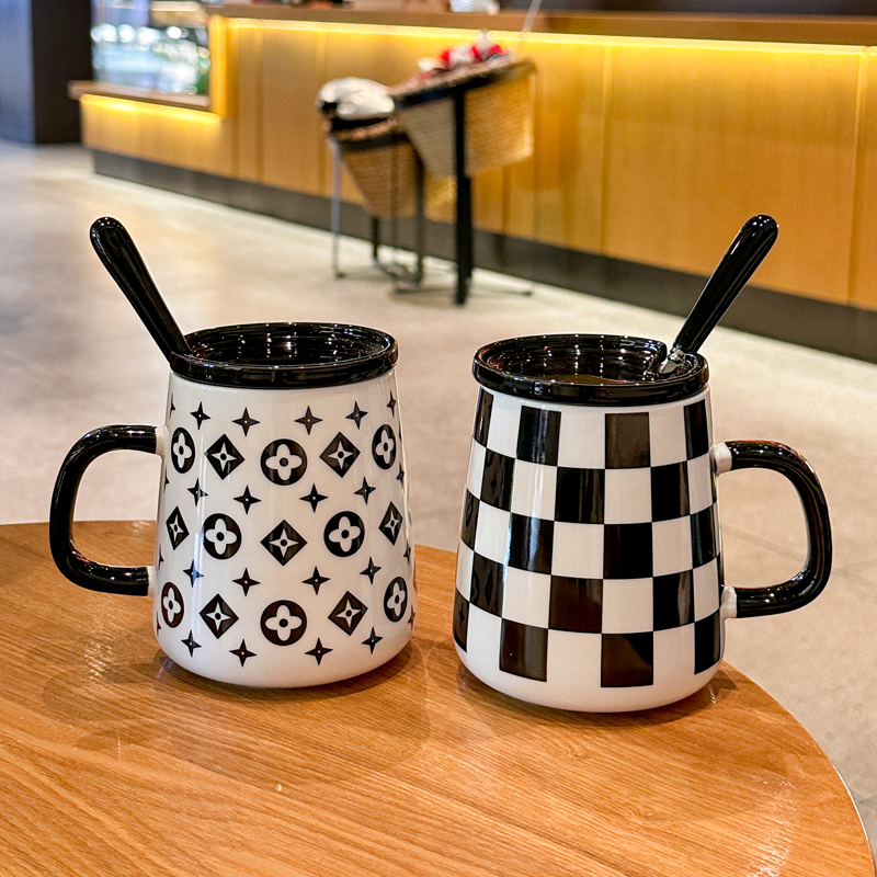 高颜值创意马克杯带盖勺女生情侣陶瓷喝水杯子办公室咖啡早餐杯男