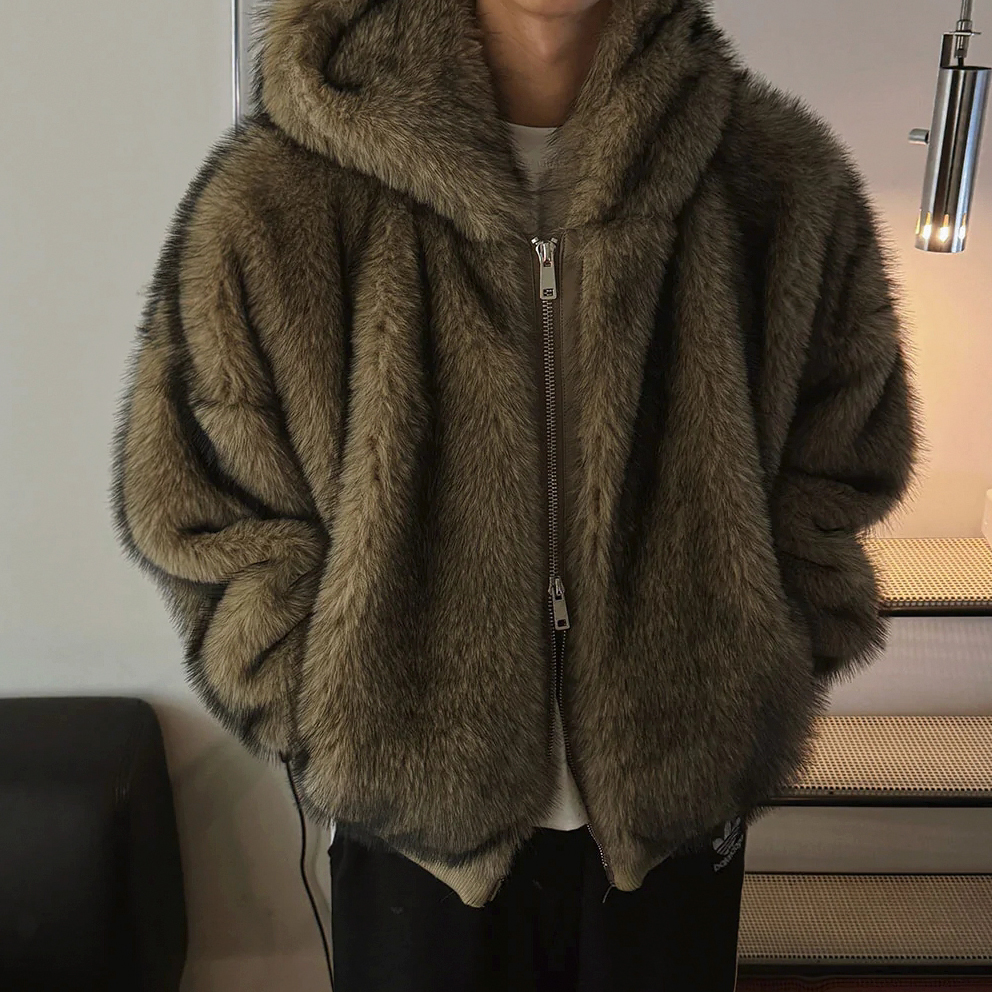 MRCYC座山雕外套男冬季宽松仿貂毛棉衣韩系潮流仿皮草连帽棉服