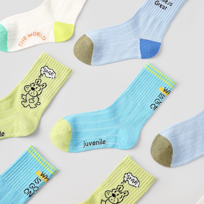 儿童袜子春夏薄款纯棉男童运动字母中筒袜中大童夏季网眼无骨棉袜
