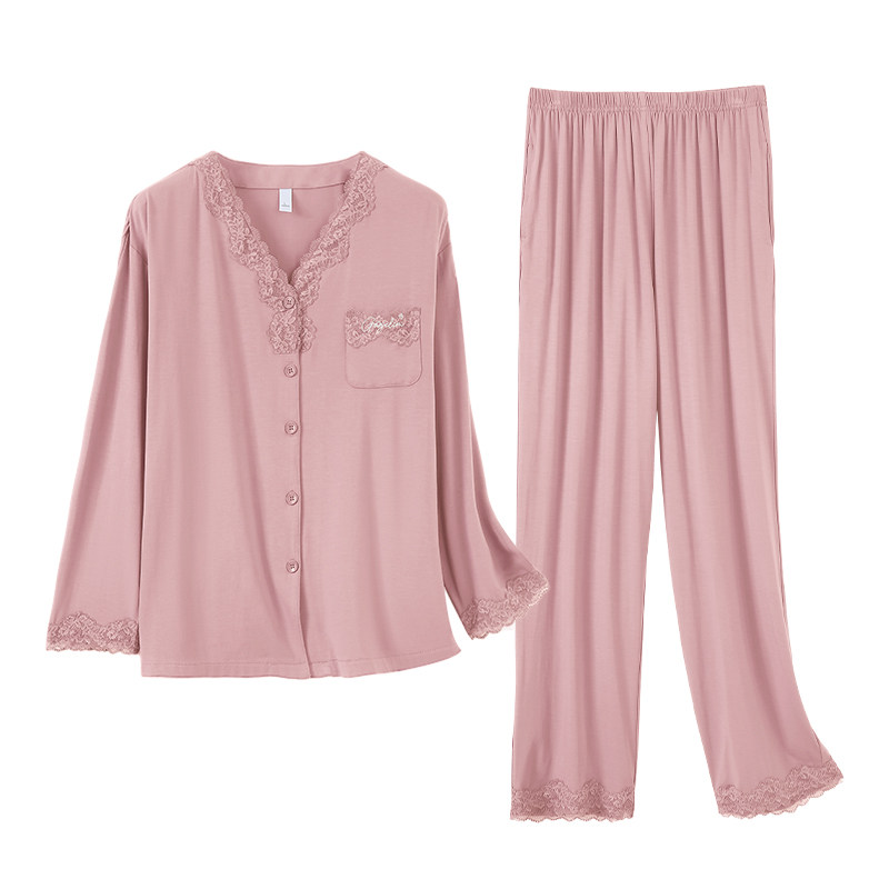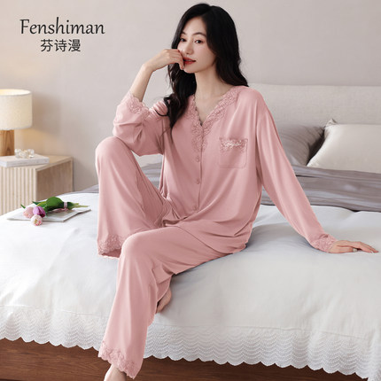 睡衣女士春秋季超软莫代尔长袖妈妈高级感轻奢风女人味v领家居服