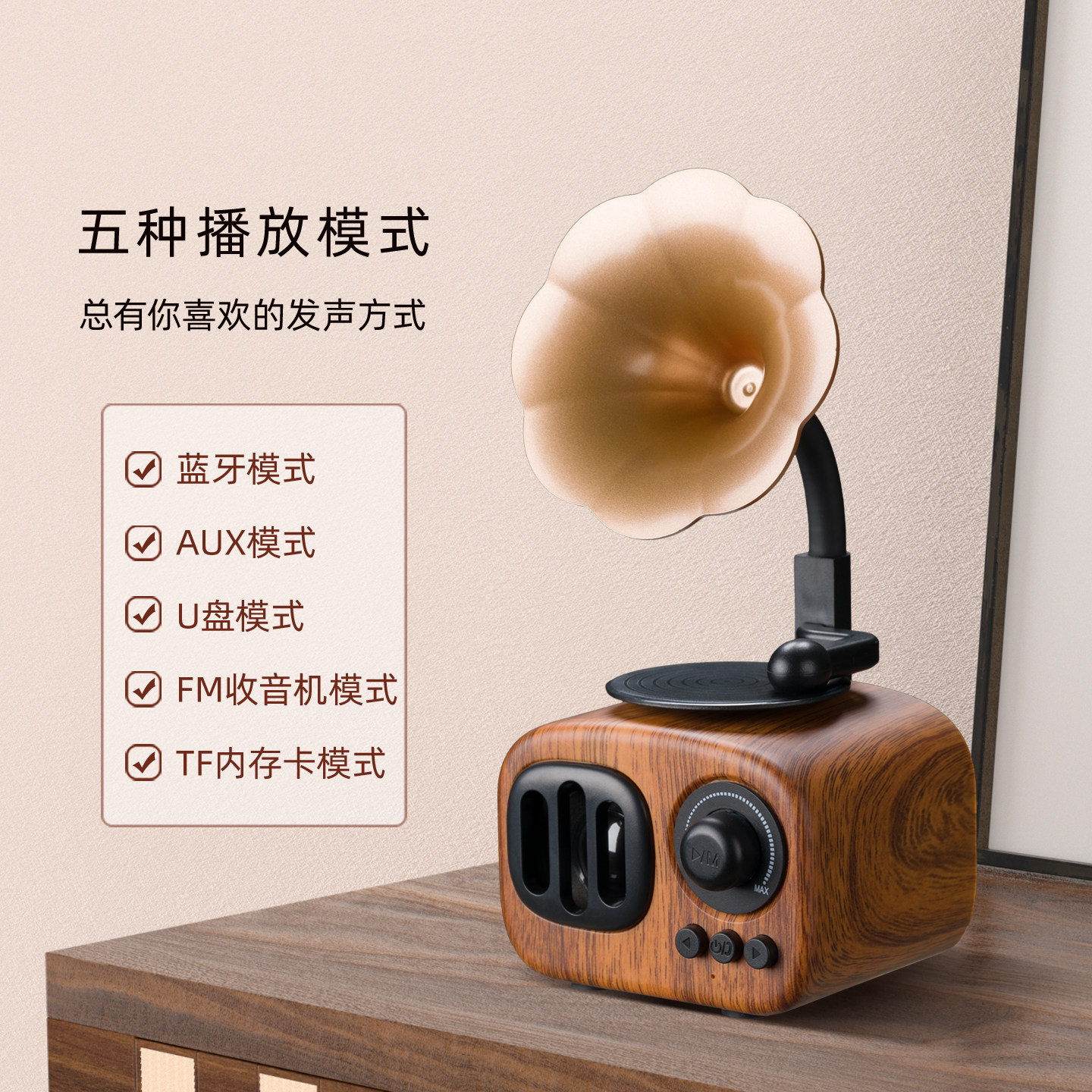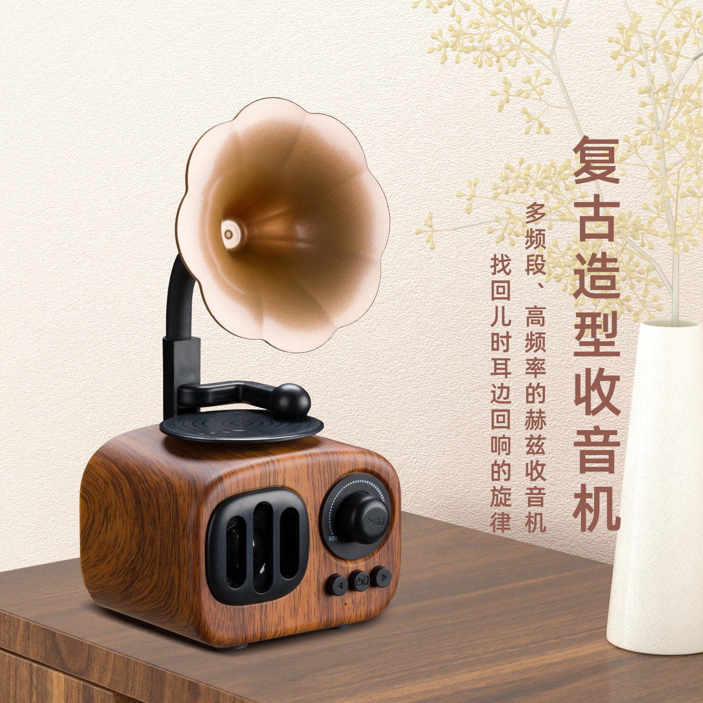 蓝牙小音箱复古迷你收音机电脑U盘留声机音响小型生日礼物低音炮