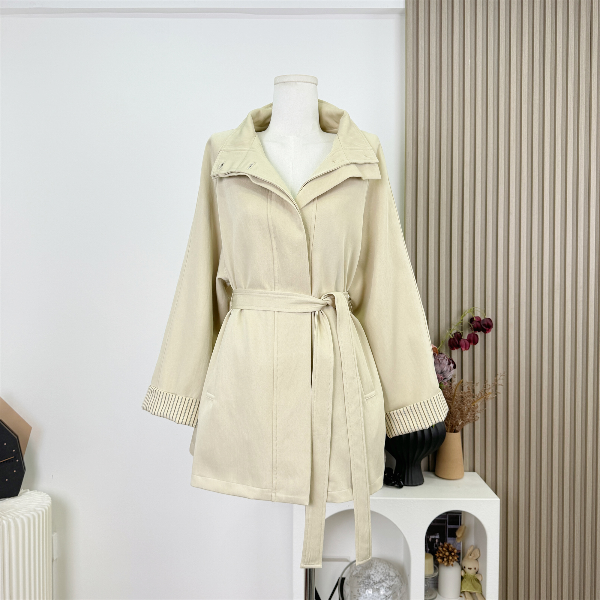 famouswang2025年早秋新款温柔挂挂气质新面料垂感洗水棉风衣外套