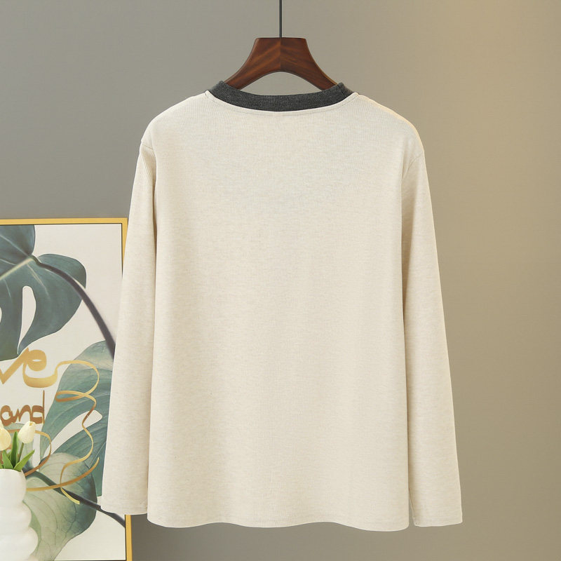 大码打底衫女2024秋季新款200斤胖mm时尚显瘦撞色拼接假两件上衣