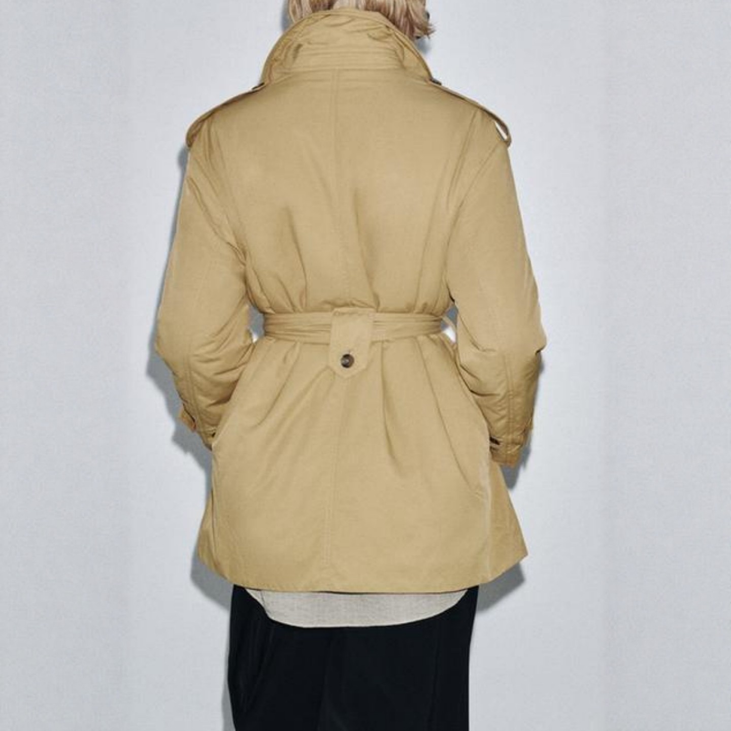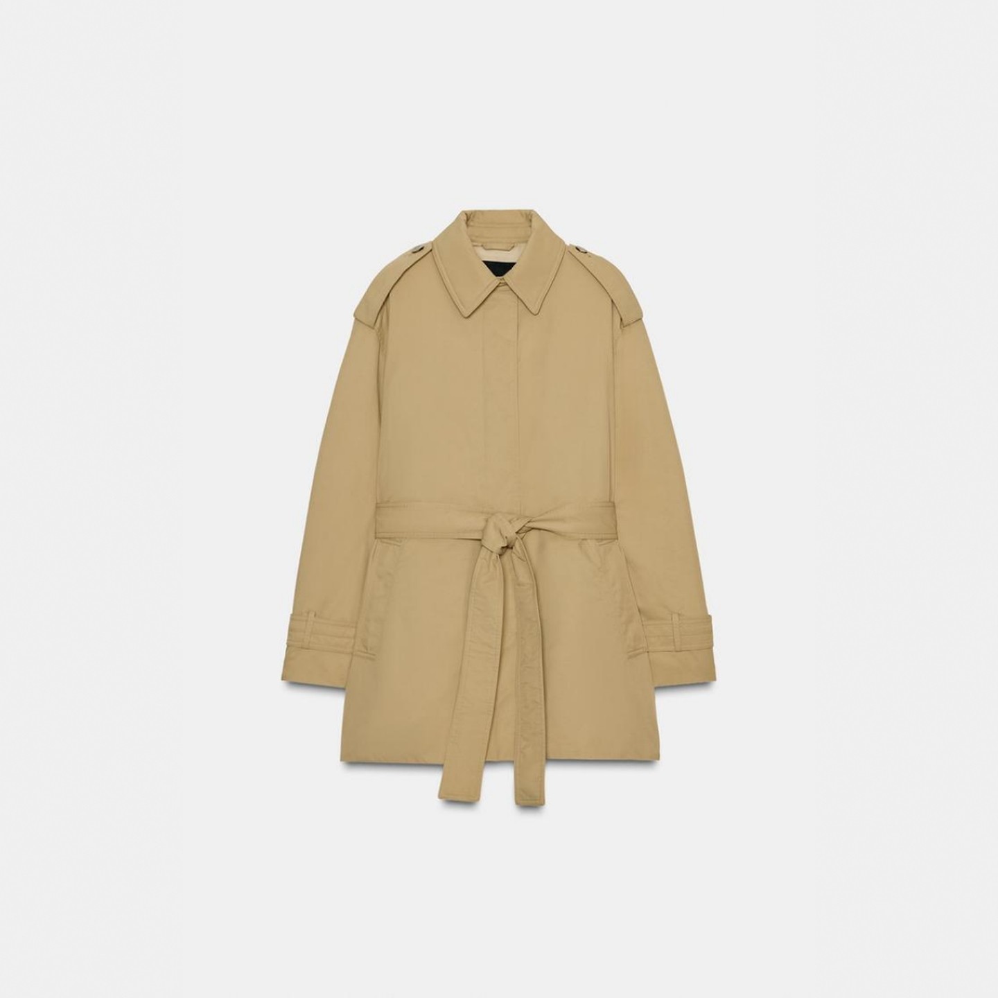 ZA外贸出口女装秋冬新款百搭经典款绗缝腰带短款风衣0518249704