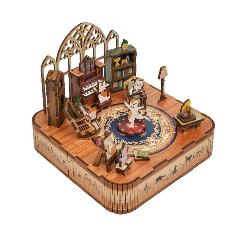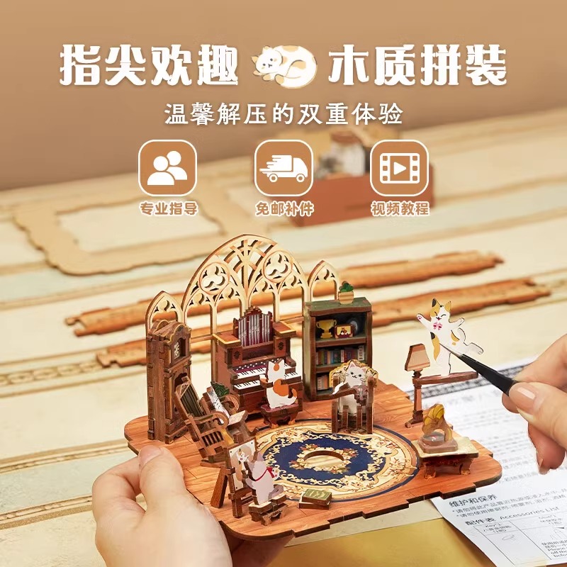 猫的欢聚八音盒拼装手工diy音乐盒益智积木生日礼物女生官方正品