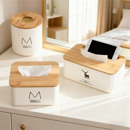 轻奢风格竹木纸巾盒加厚塑料结实