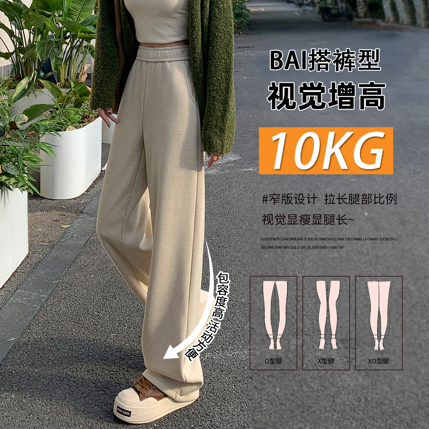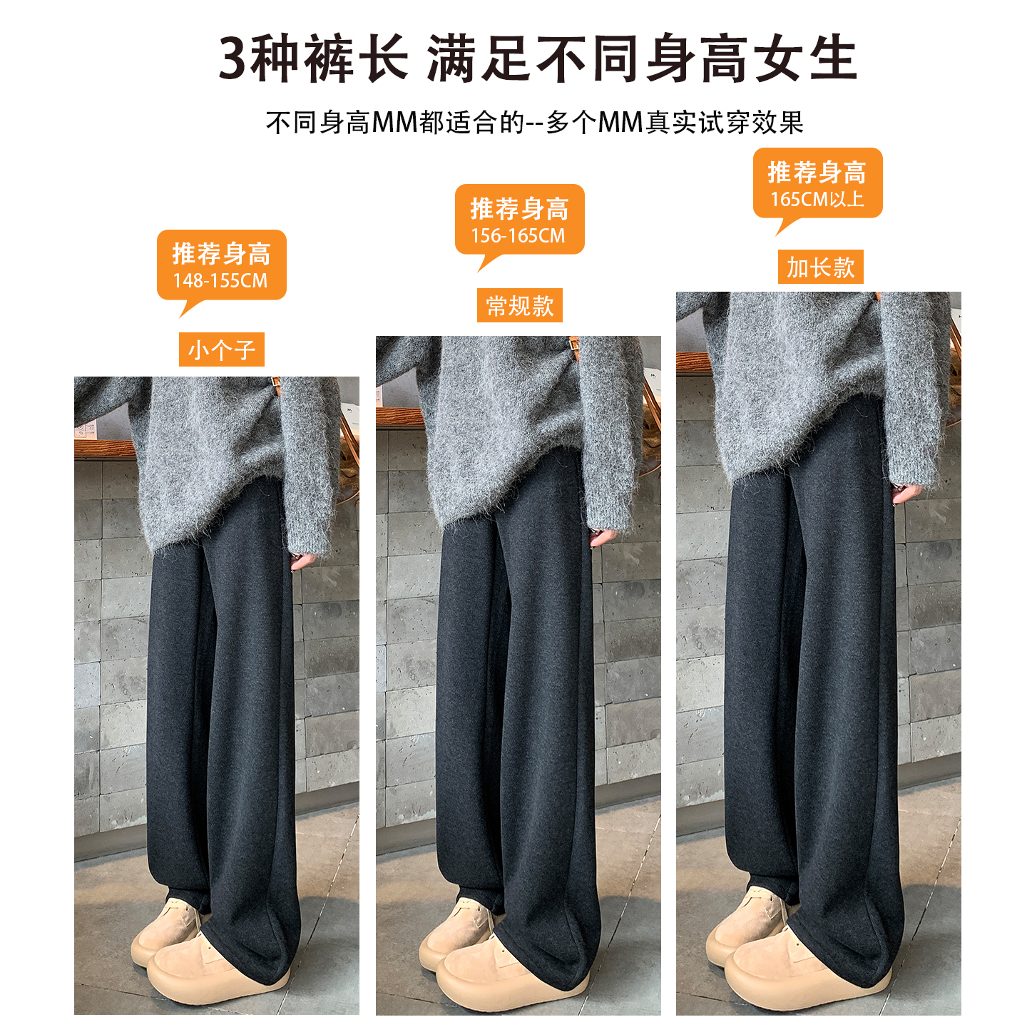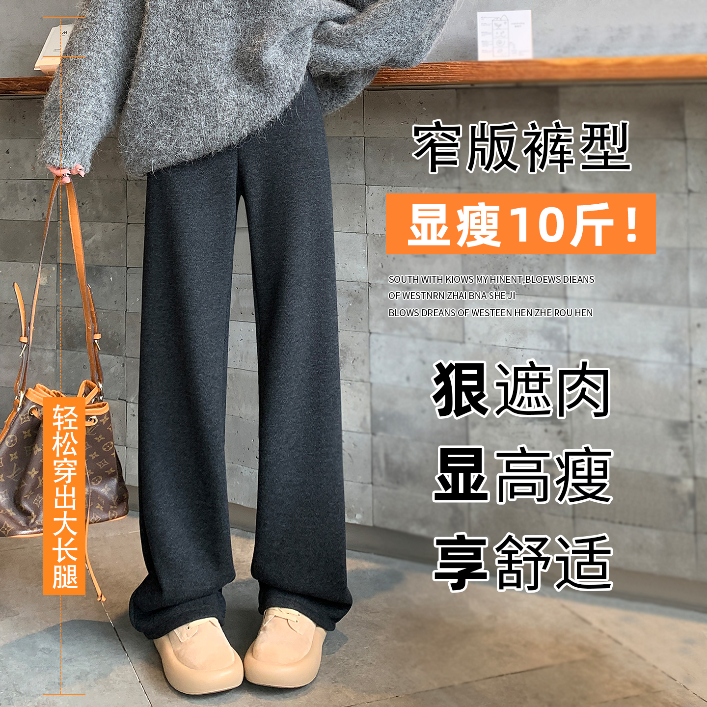 灰色羊毛直筒裤女春秋垂感高腰显瘦运动卫裤休闲冬加绒毛呢阔腿裤
