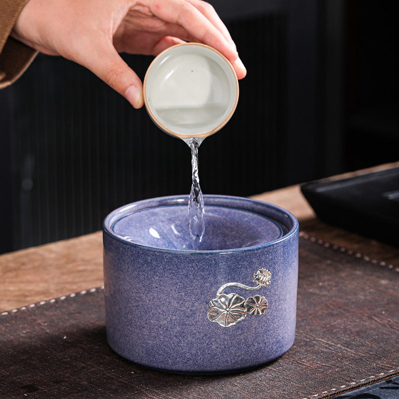 陶瓷茶洗茶渣缸废水桶家用办公烟灰缸大容量带过滤功夫茶道水盂
